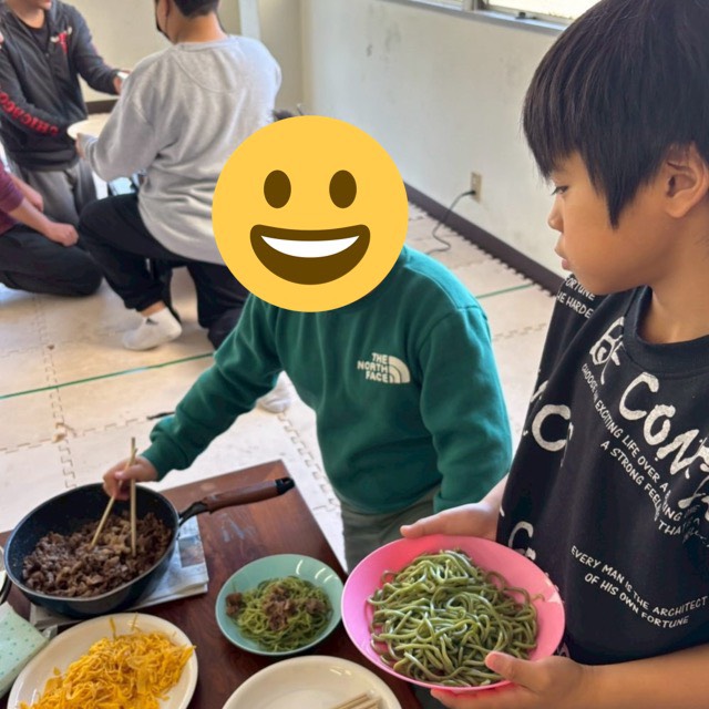 クッキング:焼きそばと瓦そばを役割を持ち、協力して上手に作ることができました